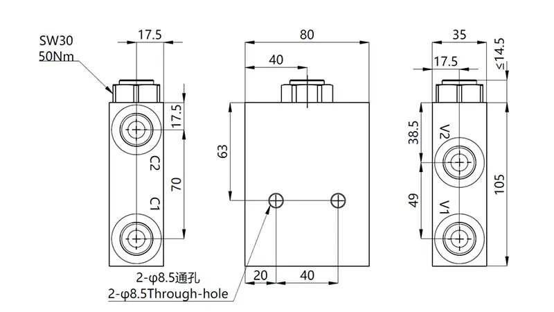 | Válvula de retenção pilotada simples MPCA-08 | 210bar | 30L/min |