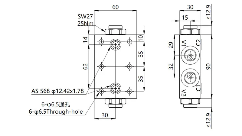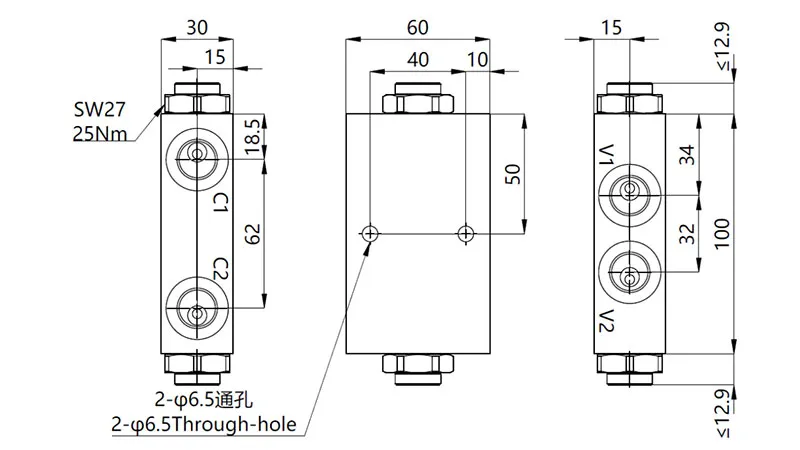 | Válvula de retenção pilotada dupla MPCA-12 | 210bar | 100L/min |