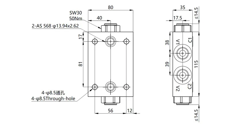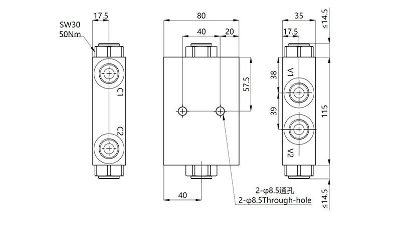 | Válvula de retenção pilotada dupla MPCA-08 | 210bar | 30L/min |